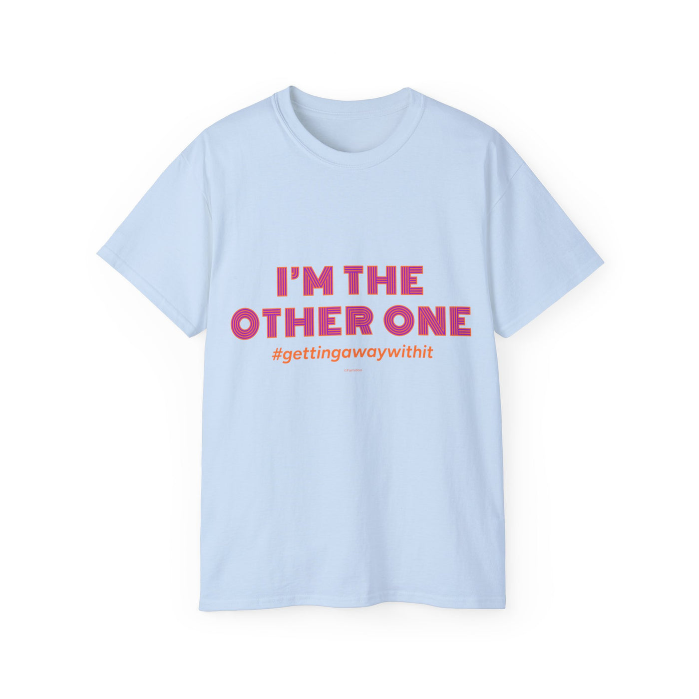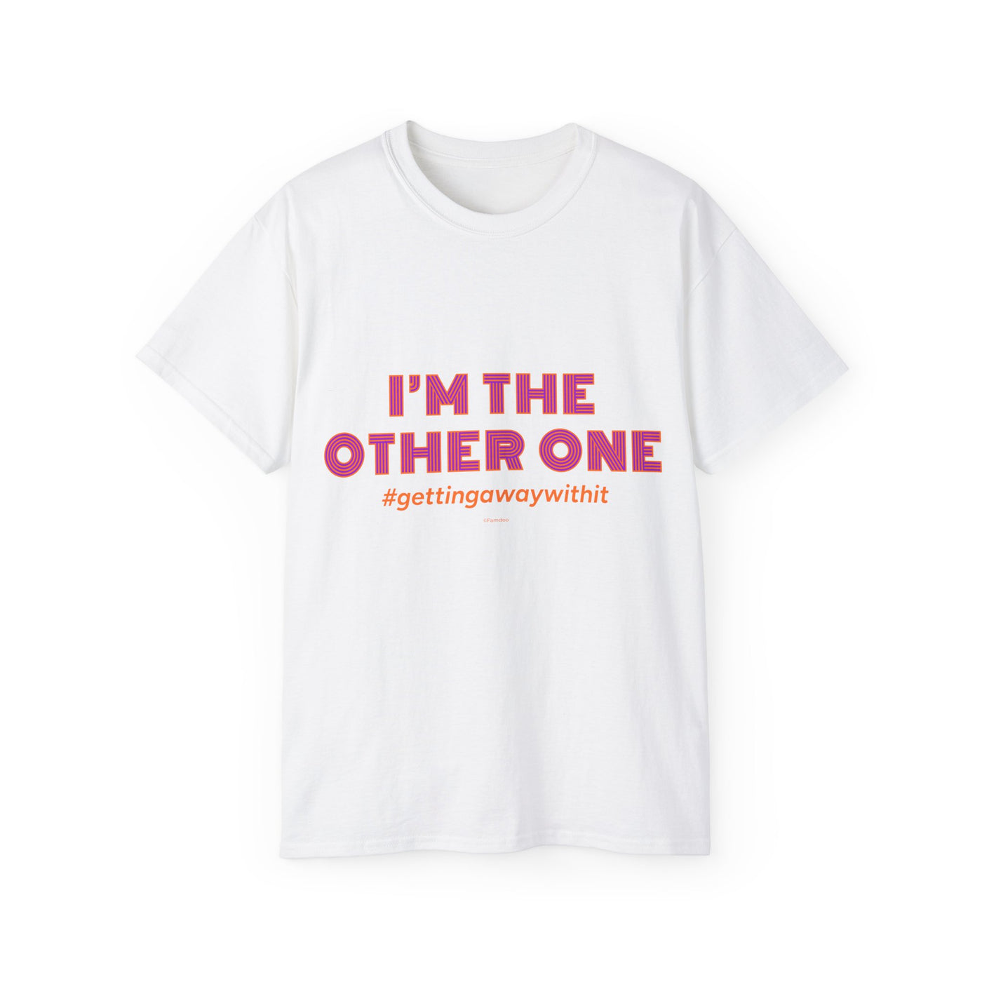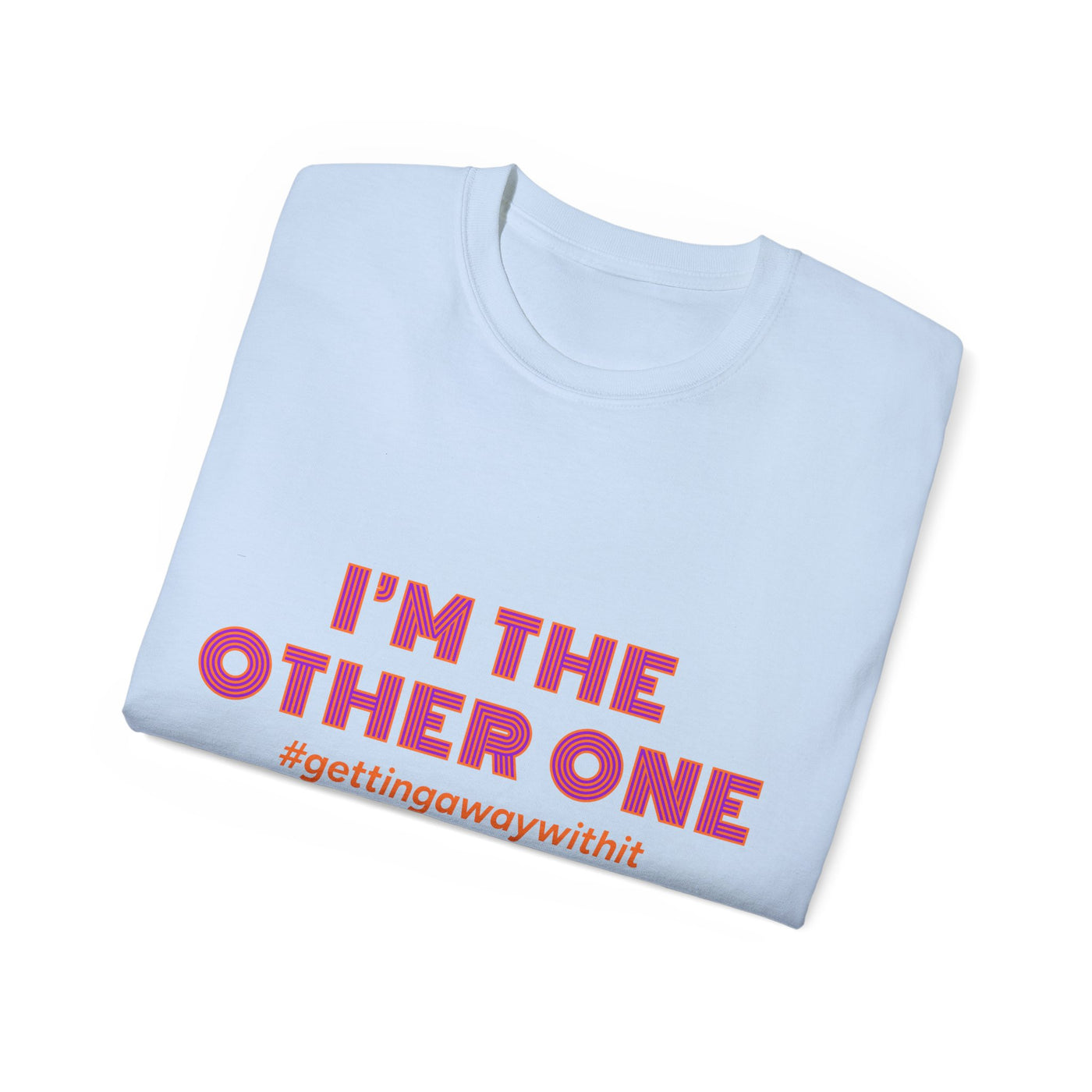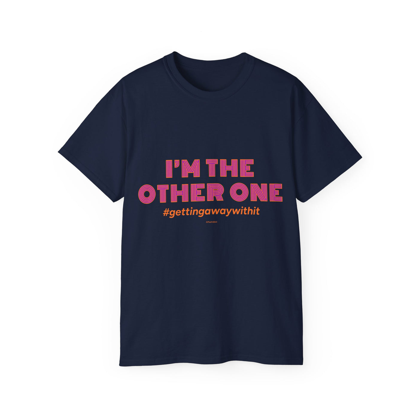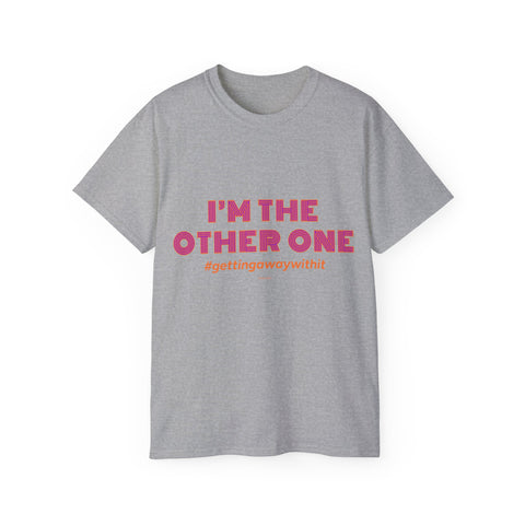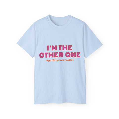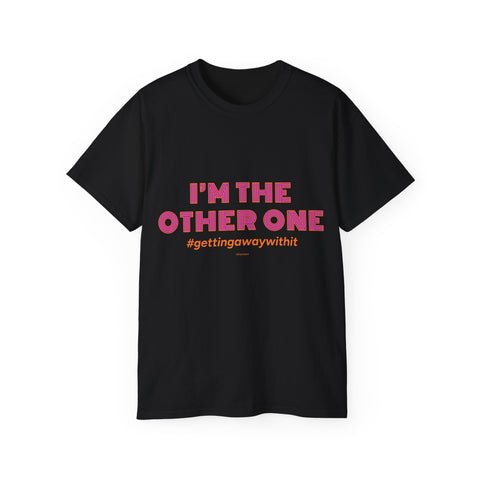 A soft, roomy tee that speaks with a wink — bold pink text declares “I’M THE OTHER ONE” with a cheeky hashtag beneath. The medium-weight cotton feels substantial without being stiff, and the slightly oversized cut leaves space for movement and layering. Wear it to brunch, a casual meet-up, or a low-key protest of family photo symmetry. The shirt settles into your rotation quickly: it looks great untucked, under an open jacket, or rolled-sleeve casual. The tone is playful and a little rebellious, made for people who like to poke fun at roles and expectations while staying comfortable.